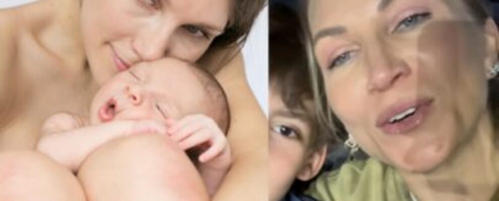 Mulher acaricia bebê recém-nascido em foto e aparece em vídeo com filho mais velho. Imagem de arquivo.