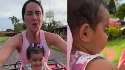 Mostrando que é uma mamãe moderna e aventureira, Graciele decidiu levar a pequena Clara para um passeio de quadriciclo pela fazenda. Nos Stories do Instagram, ela compartilhou tudo com os seguidores. “Hoje vamos andar de quadriciclo”, anunciou a influenciadora, toda animada. Mas o que chamou a atenção foi o cuidado exemplar de Graciele. Ela fez questão de mostrar que a segurança da herdeira vem em PRIMEIRO lugar, prendendo a menina em um cinto especial que passava por sua própria cintura. Mamãe nota 10!