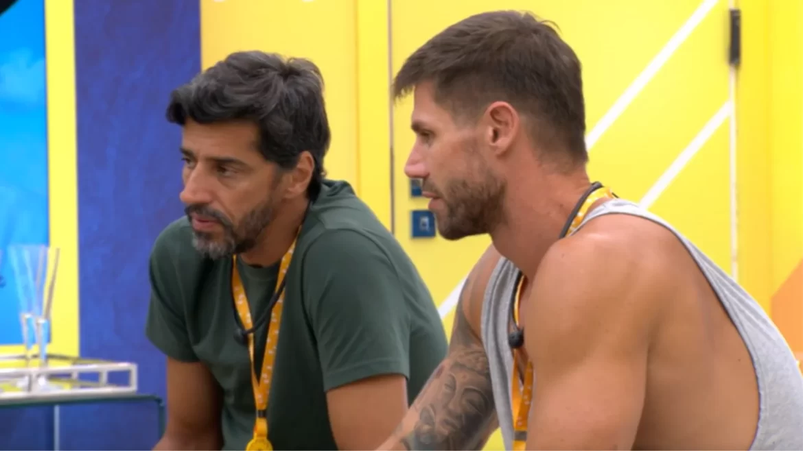 A conversa começou com Jonas, direto e reto, sugerindo o nome do tiktoker Juliano Floss. Cowboy, por sua vez, ficou um pouco em cima do muro, pensando em outras possibilidades. Ele chegou a cogitar indicar Breno, mas Jonas foi rápido em descartar a ideia. “De novo, velho? Não, o Juliano. O Breno acabou de [voltar do paredão falso]“, lembrou o gaúcho, mostrando que está com a memória afiadíssima no jogo.