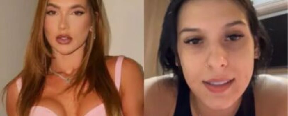 Influenciadoras Gabi Martins e Rafa Kalimann em montagem de fotos. Gabi usa top rosa e Rafa, blusa preta.