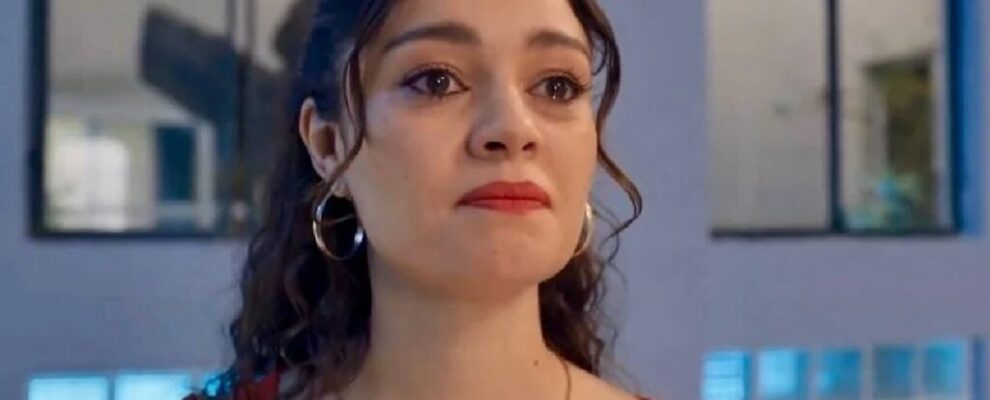 Atriz brasileira Mel Lisboa em cena de novela, com maquiagem e brincos de argola.
