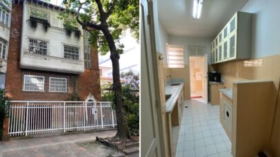 Mas vamos ao que interessa: o apê! Com 136 metros quadrados, o imóvel ocupa todo o segundo andar do prédio, garantindo privacidade. A planta original conta com três quartos, dois banheiros, duas salas bem amplas, uma área de serviço e até uma vaguinha na garagem — artigo de luxo em Ipanema!