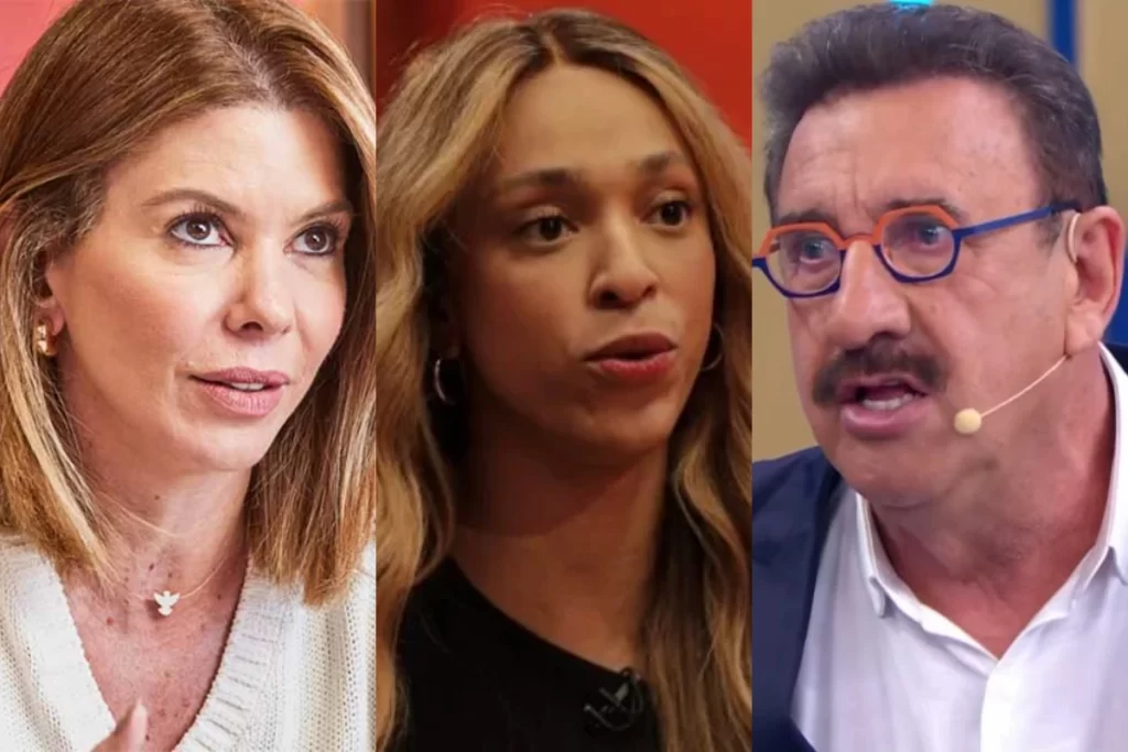 Ticiane Pinheiro, Linn da Quebrada e Gugu Liberato em um programa de TV.
