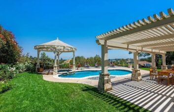 Lá dentro, são cinco quartos e sete banheiros, tudo com muito luxo e bom gosto. O projeto valoriza a luz natural, com janelões que dão uma vista incrível para o jardim. Imagina acordar com aquele sol da Califórnia entrando pela janela? Do lado de fora, a área de lazer é um sonho: tem uma piscina que parece um oásis, um jardim impecável com carvalhos e roseiras, e até uma área de convivência perfeita para festas. E tem mais, viu? A casa ainda conta com uma mesa de sinuca para os momentos de diversão.