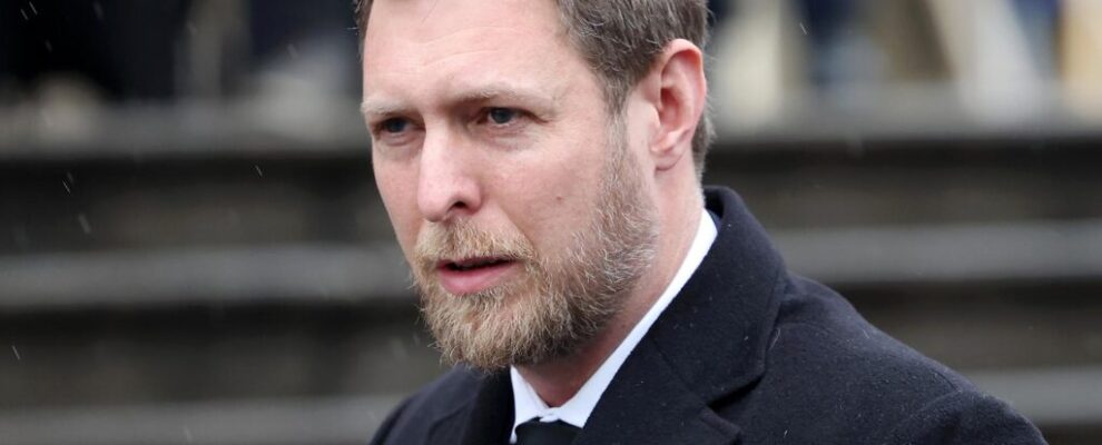 Homem de terno e gravata com barba, em close-up, com escadas ao fundo.