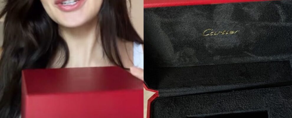 Nos Stories do Instagram, Fran mostrou, toda feliz, o unboxing do presente. Ela fez questão de frisar que não faz a menor ideia do que vai ganhar. “Eu não escolhi. Eu não escolho os presentes que ele me dá e fico cada vez mais surpresa com o bom gosto dele”, confessou ela, aumentando ainda mais a nossa curiosidade. E que bom gosto, viu? O presente de Franciny Ehlke veio na icônica caixa vermelha da Cartier, e o que tinha dentro era de parar o trânsito.