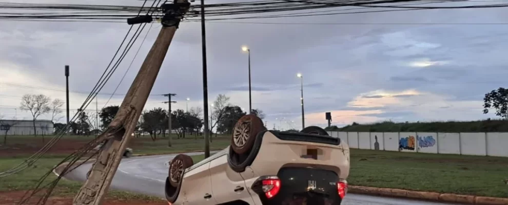 Brasília parou por um instante na noite de domingo, gente. Por volta das 18h, um Fiat Mobi branco, que trafegava na via entre o Autódromo Internacional de Brasília e o Ginásio Nilson Nelson, simplesmente perdeu o controle. O resultado? O carro capotou de forma espetacular e, na sequência, atingiu em cheio um poste de energia, que veio abaixo na mesma hora.
