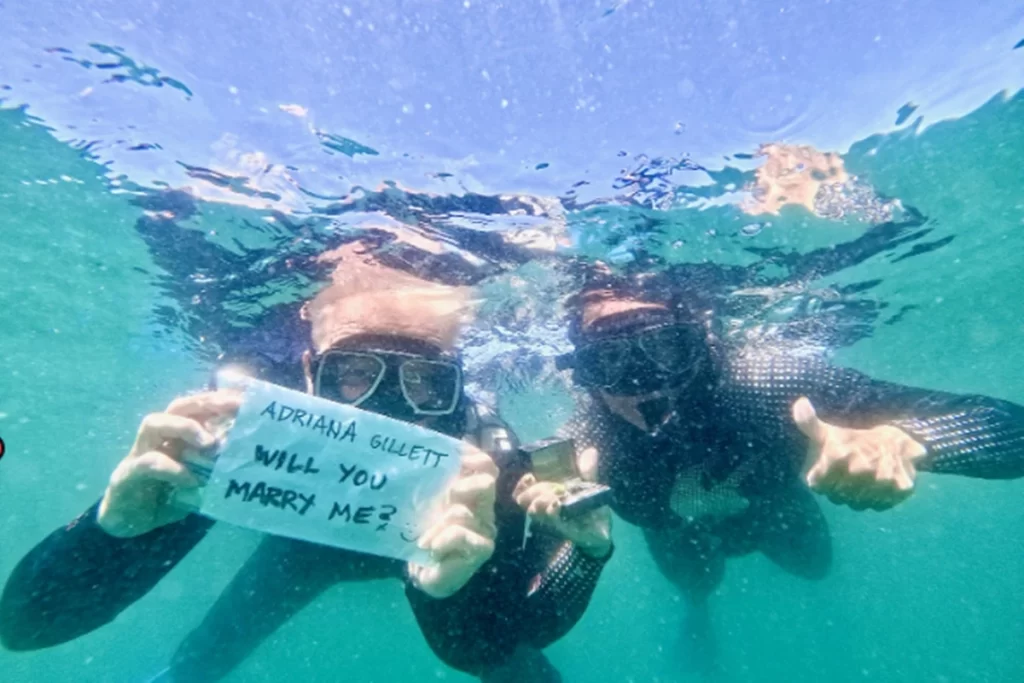 A cena foi flagrada durante um mergulho em um local paradisíaco, mas que se transformou em um palco de emoções fortes. James Hetfield, conhecido por sua energia avassaladora nos palcos, mostrou um lado mais romântico e corajoso fora deles. Com uma placa cuidadosamente preparada, ele se aproximou de Adriana e fez a pergunta que selaria o futuro do casal. A reação dela, claro, foi de espanto e felicidade pura, tudo isso enquanto os tubarões faziam a