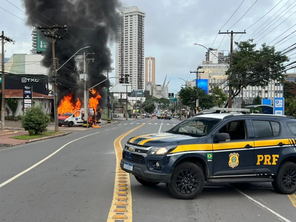 A avenida foi interditada pelo risco iminente de explosão dos cilindros de oxigênio que estavam na ambulância incendiada, para garantir a segurança da população.