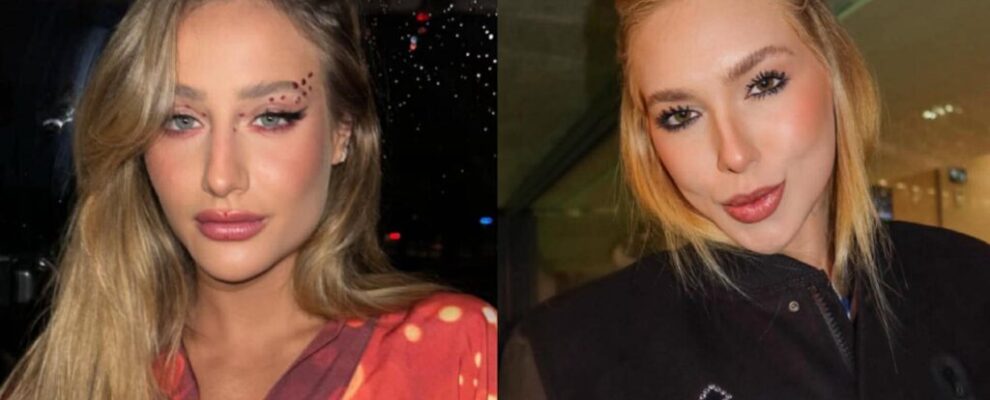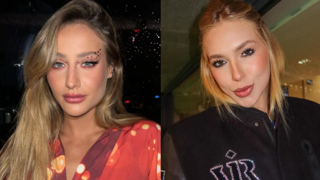 Bianca Andrade e Gkay em montagem de fotos, ambas com maquiagem e looks chamativos.