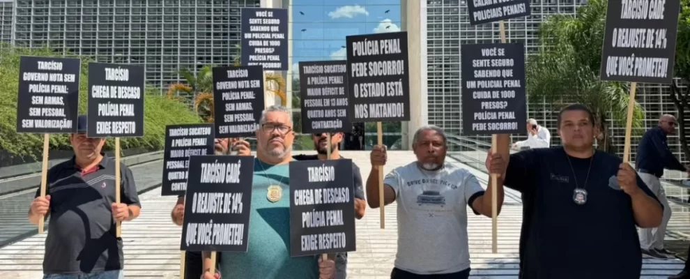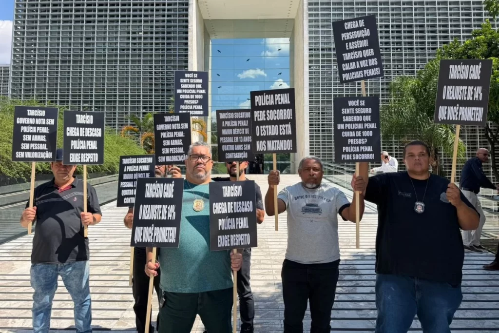 Os policiais penais protestam porque foram excluídos do reajuste salarial de 10% anunciado pelo governador Tarcísio de Freitas, enquanto outras forças policiais foram contempladas.