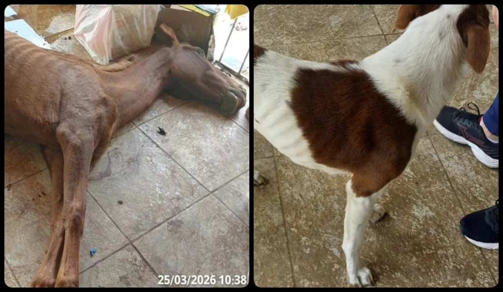 A égua, que infelizmente não resistiu, foi encontrada em estado crítico, com sinais evidentes de desnutrição severa. Os cães resgatados apresentavam ferimentos, desidratação e estavam em ambientes insalubres, o que demonstra um descaso total com a vida e o bem-estar dos animais. A tortura descrita é algo que não pode ser tolerado em nenhuma sociedade que se preze.