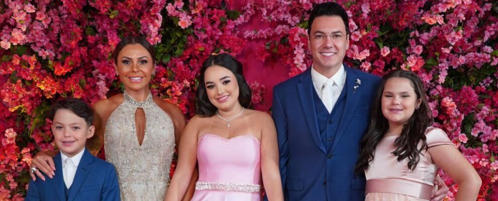 Os destaques incluíram a decoração luxuosa, vestidos avaliados em quase R$ 1 milhão para mãe e filha, e a valsa com o pai e familiares, além de show da dupla Hugo & Guilherme.