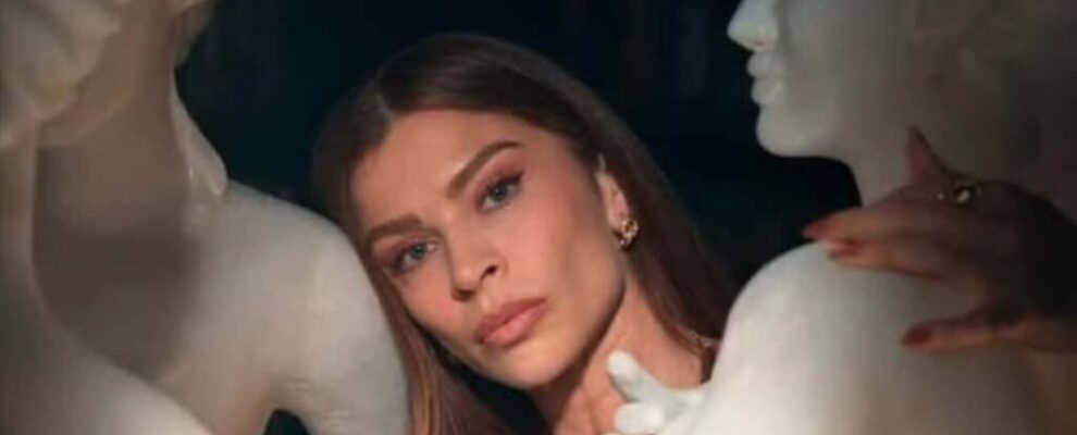 Grazi Massafera posa entre esculturas clássicas em ensaio fotográfico com iluminação dramática.