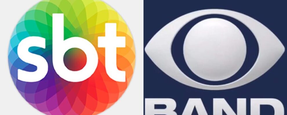 Logos do SBT e da Band, duas emissoras de televisão brasileiras, lado a lado.