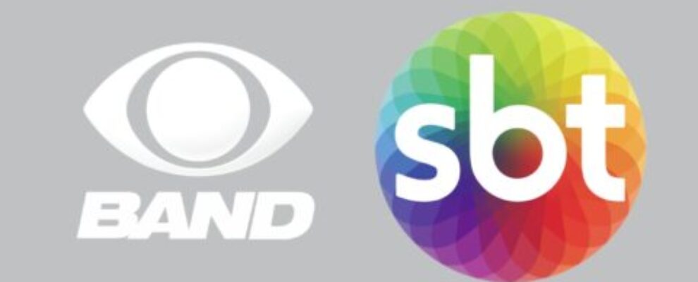 Logos das emissoras de TV brasileiras Band e SBT em fundo cinza.