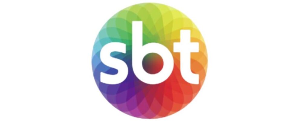 Logo do SBT com as letras 'sbt' em branco sobre um círculo com gradiente de cores vibrantes, como roxo, azul, verde e laranj…