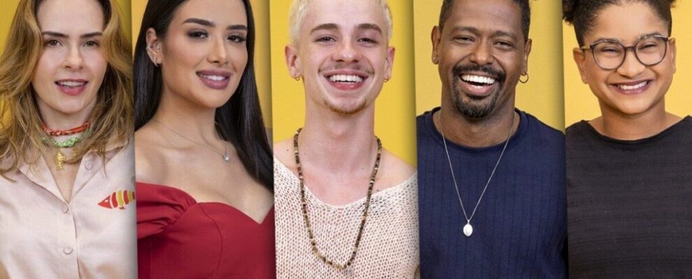 Cinco participantes do BBB 23: Bruna Griphao, Gabriel Santana, Fred Nicácio, Marvvila e Sarah Aline em fotos individuais com…